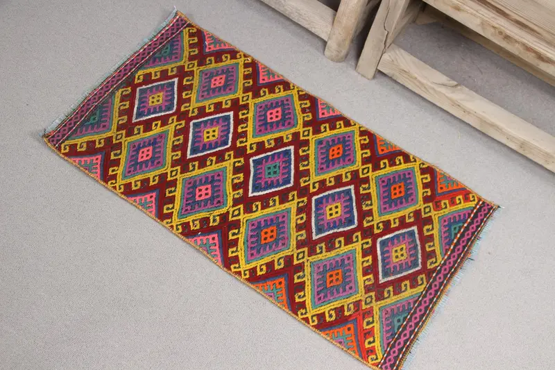 ヴィンテージ ターキッシュ ラグ 45x79cm キリム レッド ブルー サウスウェスタン ラグ