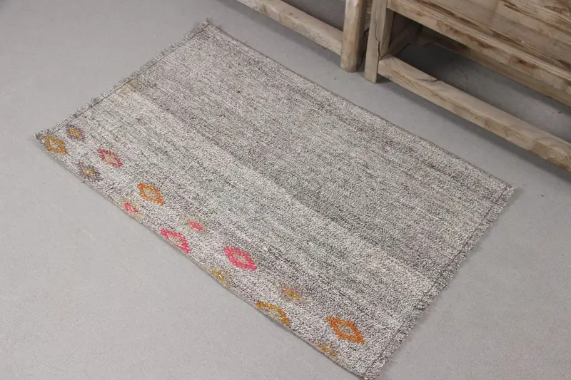 ヴィンテージラグ、2.1x3.3フィートトルコラグ、グレーピンクポルカドットウールラグ