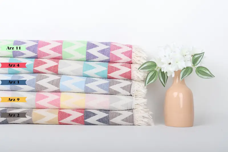 ジグザグデザインバスタオル オーガニックコットン ベージュ 40x71インチ