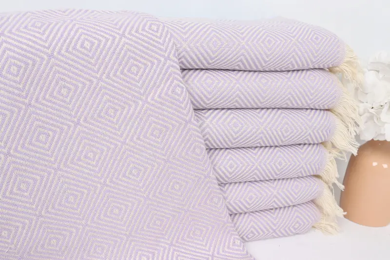 ライトライラックコットンティータオルダイヤモンドデ...