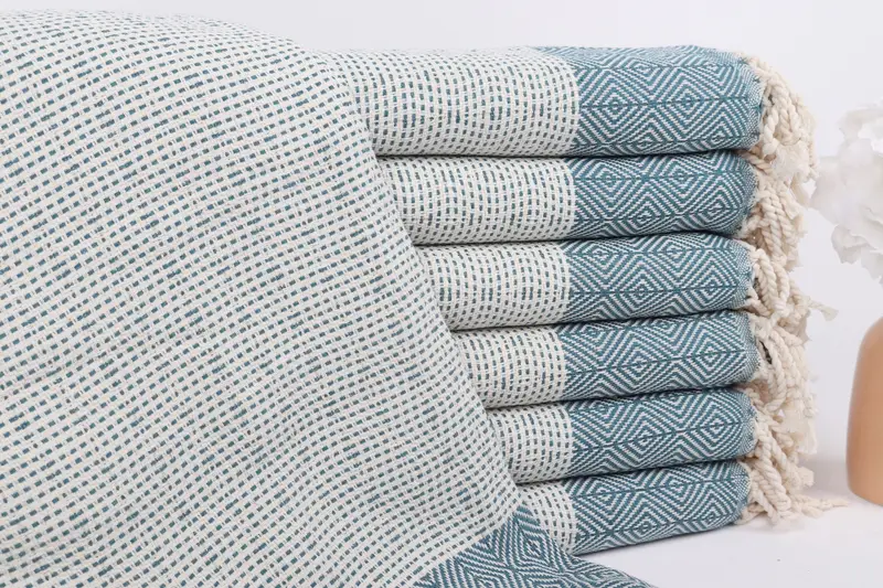 モノグラム ビーチタオル オーガニックコットン ペトロールブルー、40x71インチ