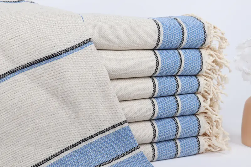 パーソナライズされたギフトボックスタオルモノグラムサックスブルーストライプ、36x71インチ