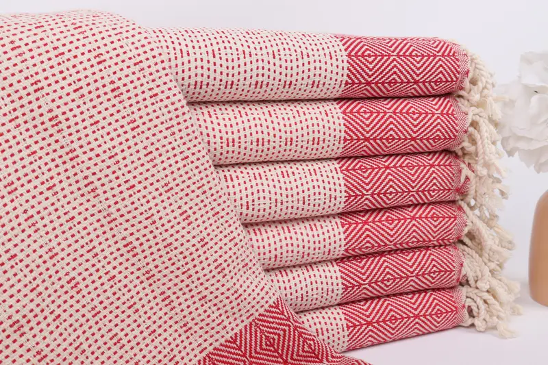 カスタムビーチタオル ダイヤモンドレッドコットン オーガニック 40x71インチ