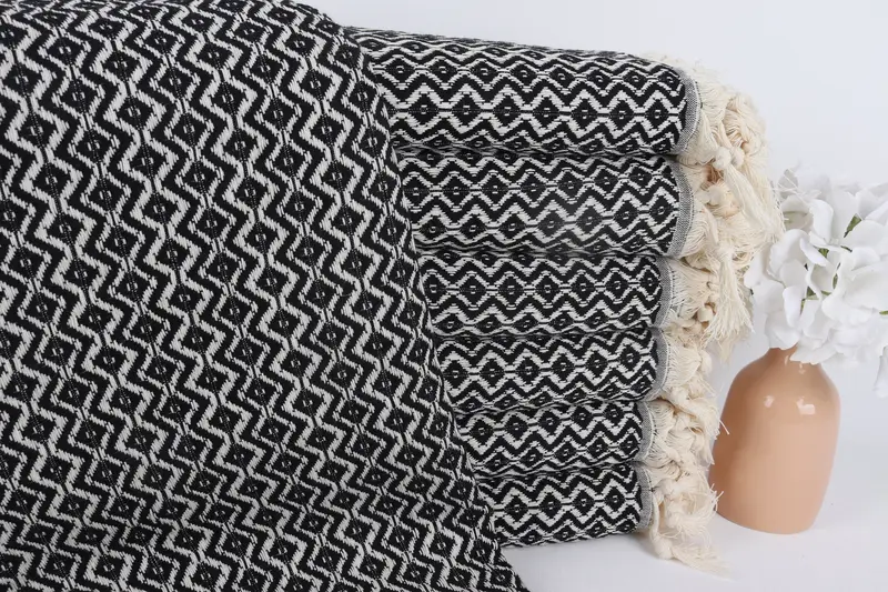 パーソナライズされたトルコ綿ビーチタオル ブラック ベージュ、40x71 インチ