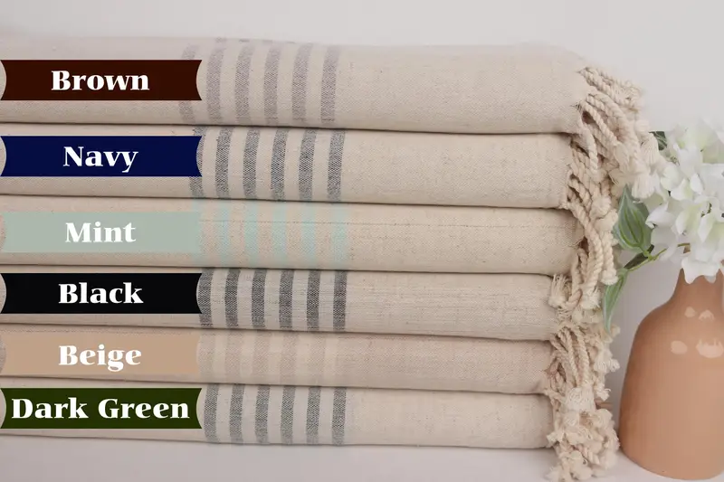 ハマム コットンタオル ストライプ ベージュ、オーガニックバスタオル、36x67インチ