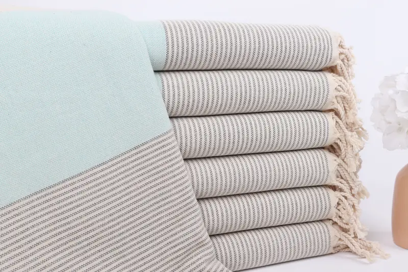 パーソナライズされたトルコタオル ダークグレーミントストライプ バスタオル 40x71インチ