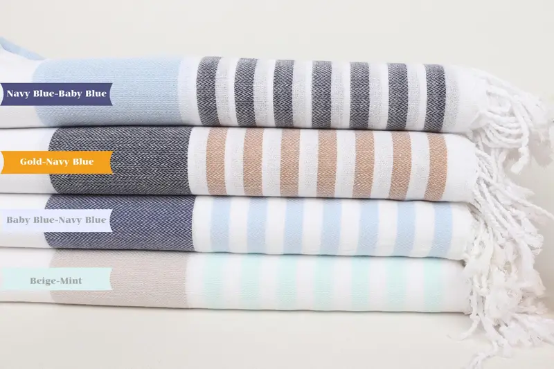 ストライプタオル 手作りオーガニックコットン ベージュバス 40x71インチ