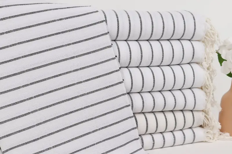 パーソナライズされたギフトボックス トルコビーチタオル ブラックストライプ 40x71インチ