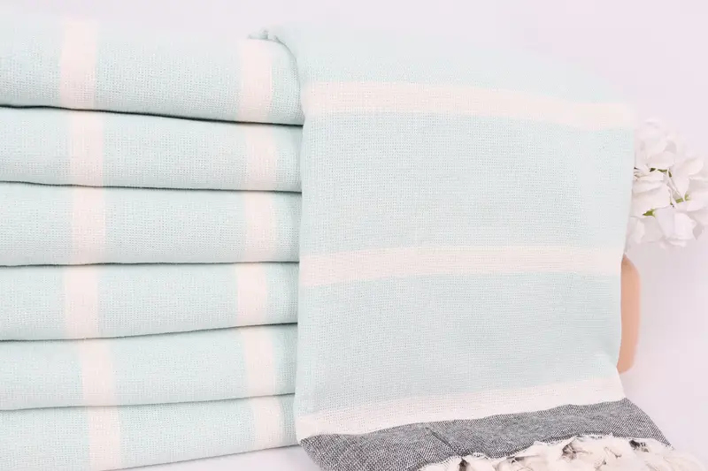 ハンドメイド ギフト ストライプ タオル 40x63 インチ ミント オーガニックコットン バスタオル