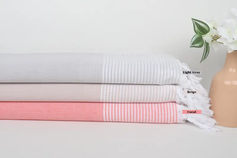 パーソナライズされたストライプタオルバスオーガニックコットンベージュ、36x79インチ