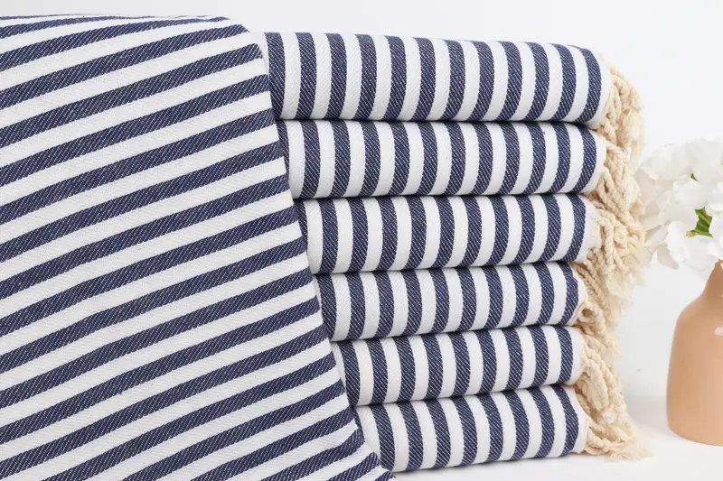 ネイビー コットン タオル ストライプ ビーチタオル モノグラム入り、40x71 インチ