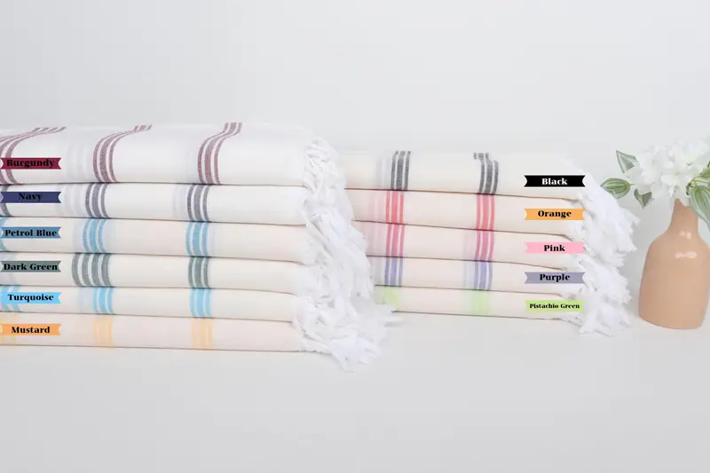 パーソナライズされたトルコビーチタオル コットンバス、ベージュストライプ、40x70インチ