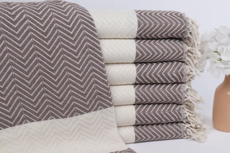 ブライドメイド ギフト タオル トルコ綿 ブラウン ジグザグ 40x71 インチ