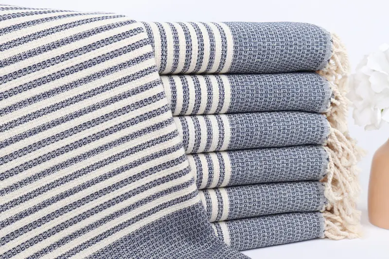パーソナライズされたトルコビーチタオル ネイビーストライプバスタオル、40x67インチ