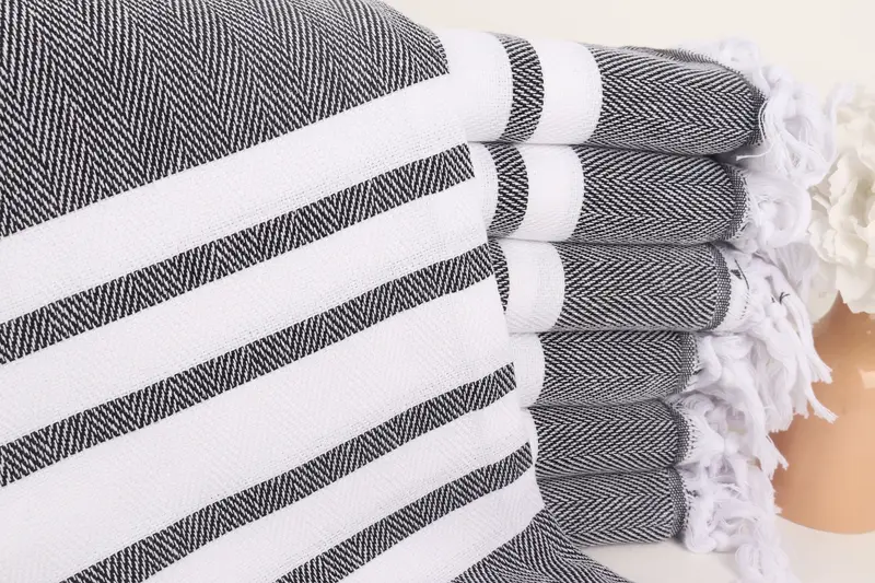 モノグラム ビーチタオル トルコ綿 ブラック シェブロン、36x67 インチ