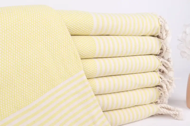 トルコタオル ビーチバス、ライトイエローコットン、32x67インチ