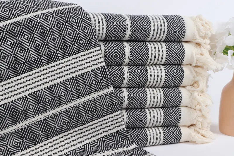 カスタムトルコタオル パーソナライズされたバスタオル、ブラック、ベージュ、38x69インチ