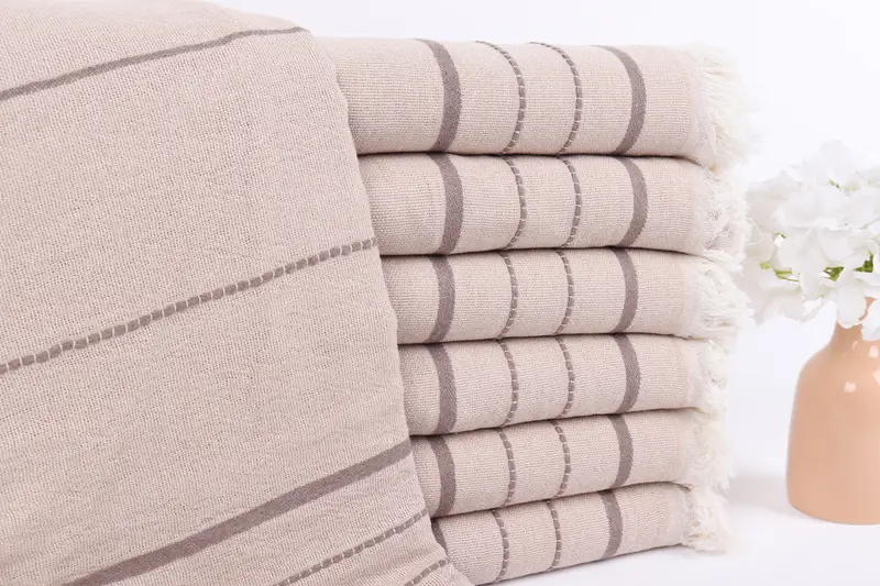モノグラムビーチタオル パーソナライズされたブラウンベージュストライプ、40x71インチ