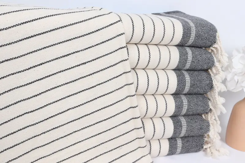 キッチンタオル モノグラム ハンドタオル クリーム コットン ストライプ 22x40インチ