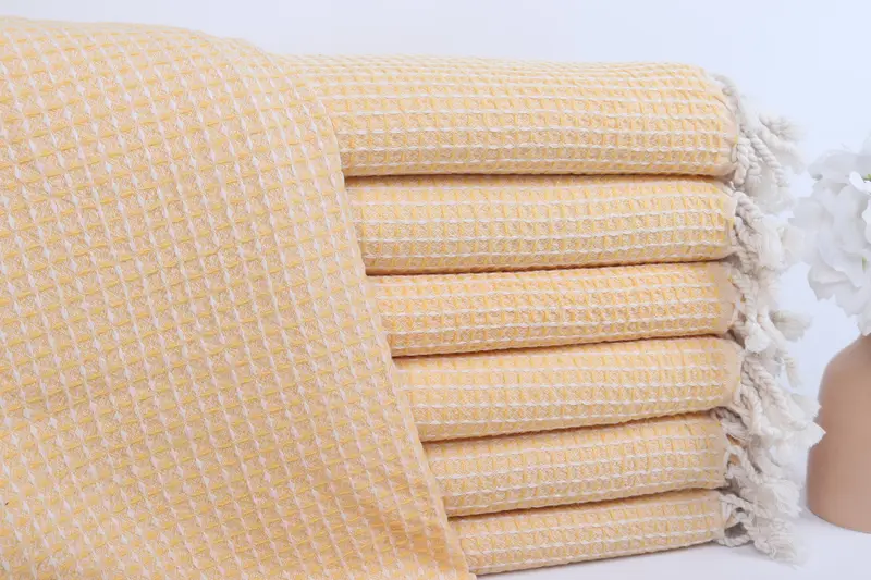 ワッフルタオル カスタムイエローオーガニックコットンバスタオル、36x67インチ