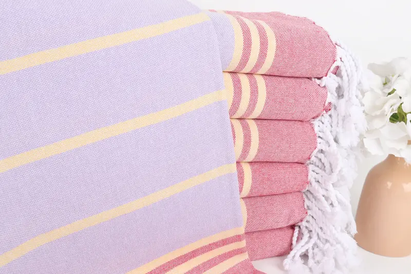 パーソナライズされた赤紫ストライプビーチタオル、3...