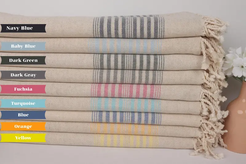 バチェロレッテギフト 軽量ストライプビーチタオル、ベージュ、リネン、40x67インチ