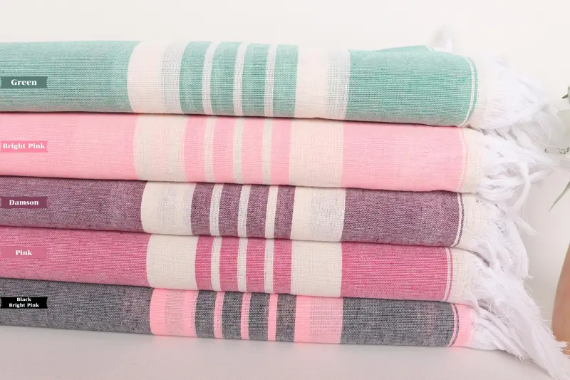 モノグラムビーチタオル コットンベージュストライプ 40x71インチ
