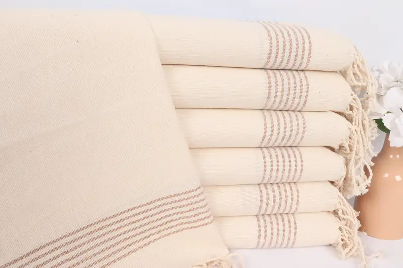 ストライプハンドタオルバスタオル、ブラウンリネンティータオル、18x36インチ