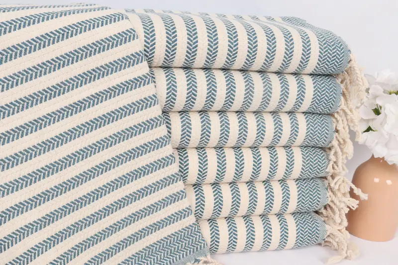 トルコタオル ハンドタオル ペトロール ブルー コットン シェブロン、18x40 インチ