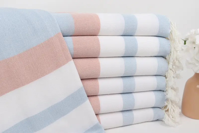 パーソナライズされたギフトボックスタオル、ベビーブルーブリックストライプ、40x71インチ