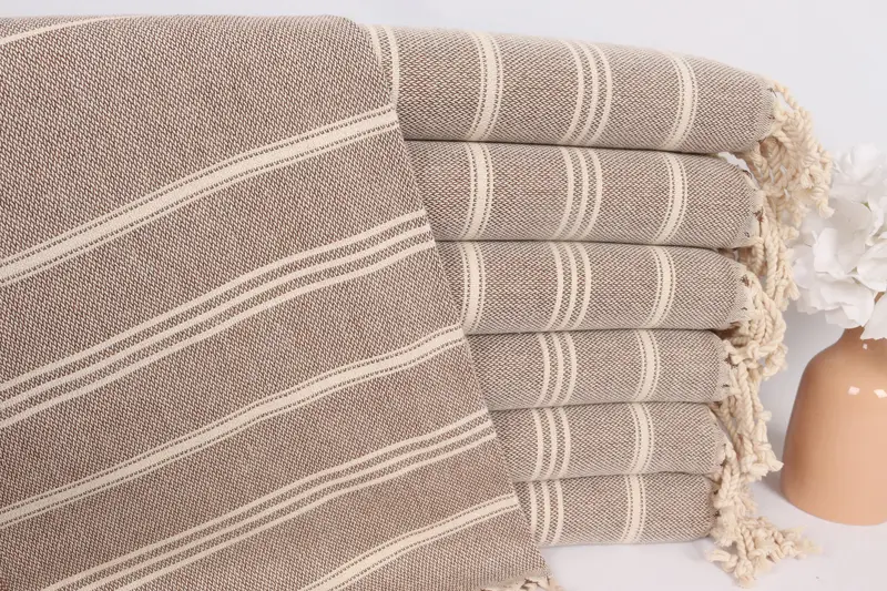 ストライプ ハンドタオル ブラウン コットン 24x36 インチ、オーガニック トルコ綿