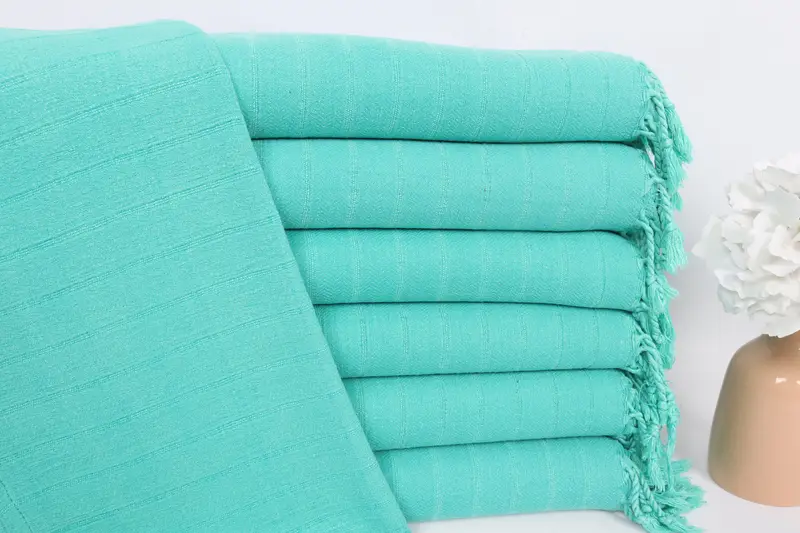 トルコ製ティータオル ストライプ ストーンウォッシュ ディッシュタオル ウォーターグリーン 16x32インチ
