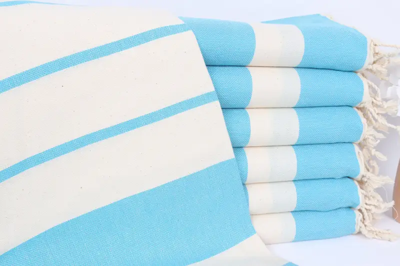パーソナライズされたターコイズバスタオル、ベージュストライプ、40x71インチ