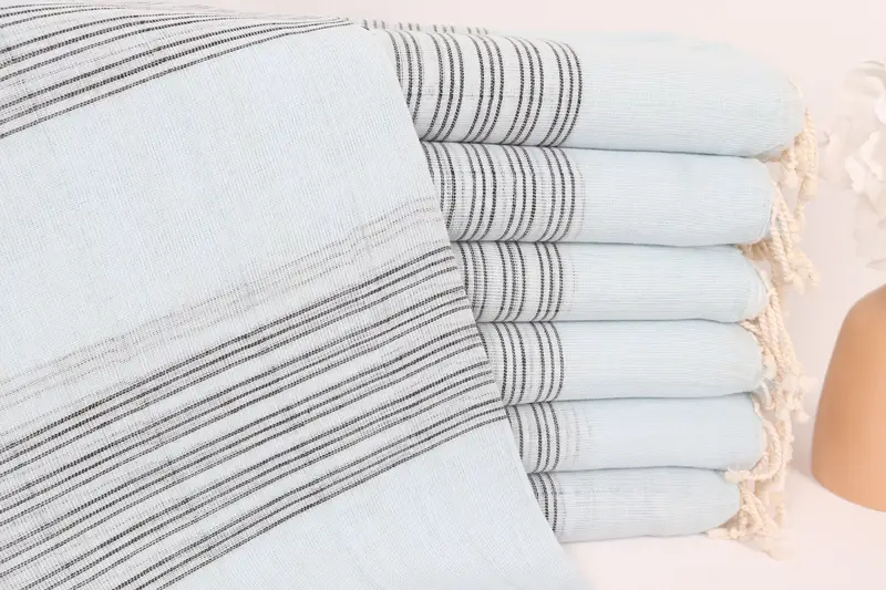 パーソナライズされたウェディングギフト、ベビーブルーブラックストライプバスタオル、40x71インチ