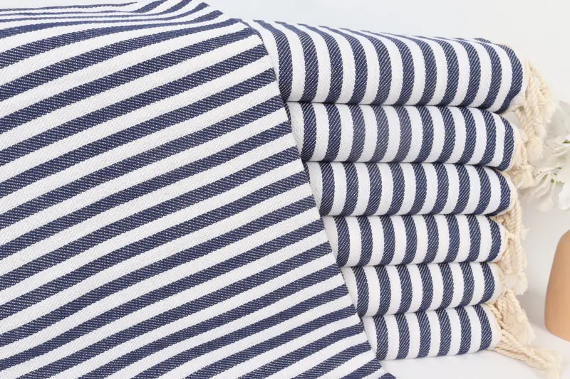 ウェディングギフト パーソナライズされたコットンハンドタオル、ネイビーストライプ、18x40インチ