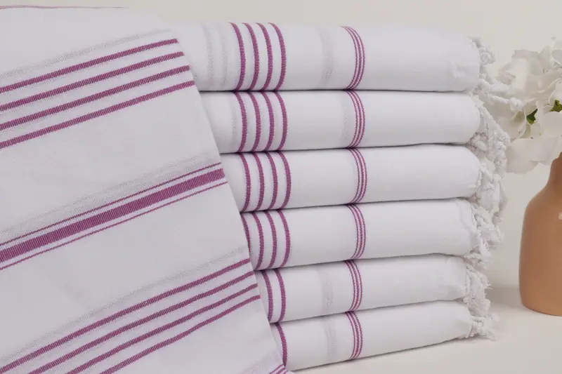 バスタオル パープル オーガニックコットン ストライプ 40x71インチ