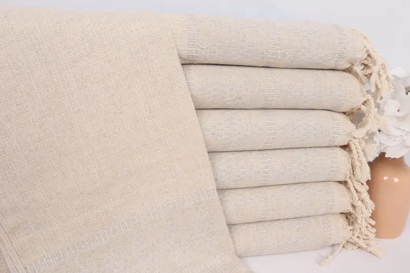 キリムデザイン ディッシュタオル ライトグレーリネン、モノグラムハンドタオル、20x40インチ