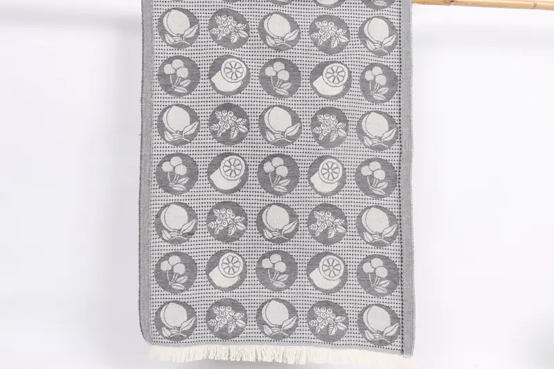 ウェディングギフト ネイビーコットン フルーツ柄 ティータオル 20x28インチ