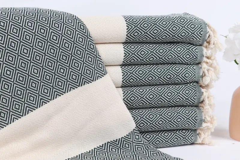 モノグラムビーチタオル トルコ綿 ダークグリーン ダイヤモンド 40x71インチ
