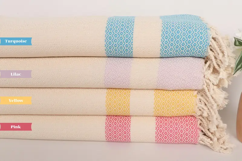 ウェディングギフトタオル幾何学模様コットンモノグラムビーチタオル、ベージュ、40x71インチ