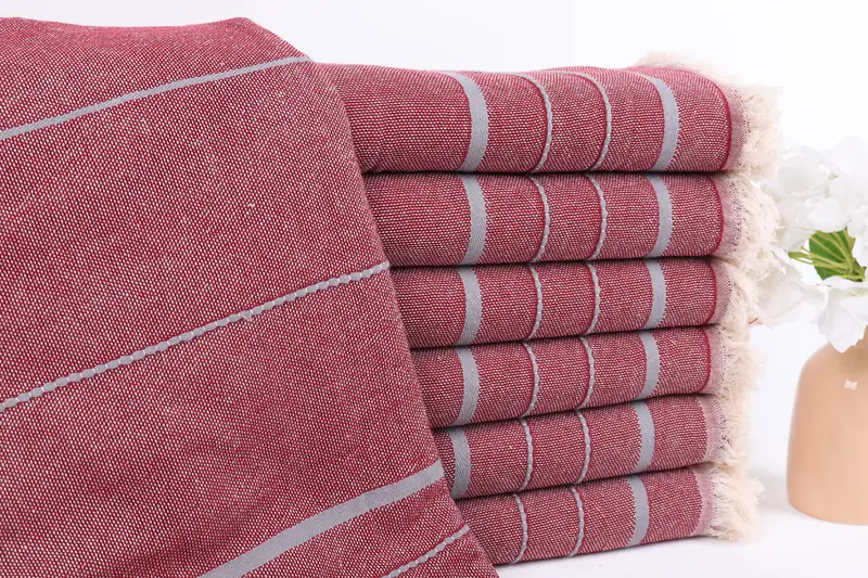 パーソナライズされたトルコビーチタオル バーガンディライトグレー、40x71インチ