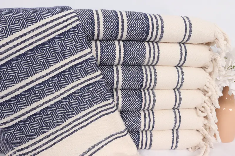 トルコタオル ハンドタオル ネイビーブルー オーガニックコットン 18x40インチ