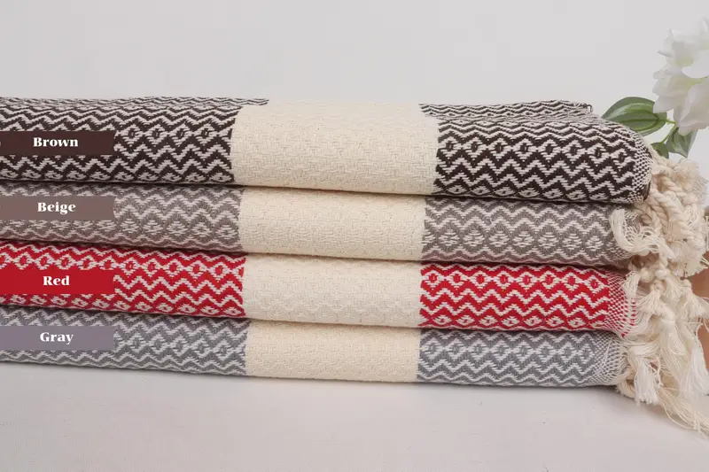 ジグザグ ティータオル トルコ綿ハンドタオル、ベージュ、0x0インチ