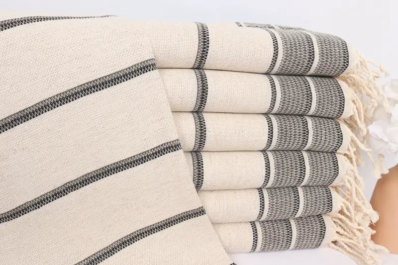 ストライプハンドタオル カーキグリーンリネン、20x40インチ、キッチン&ティータオル