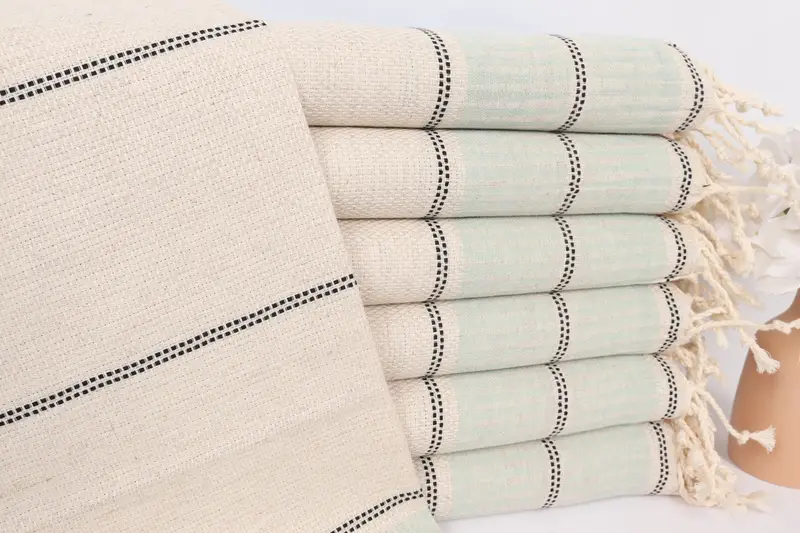 ウェディングギフト トルコハンドタオル ミントリネンストライプ 20x40インチ