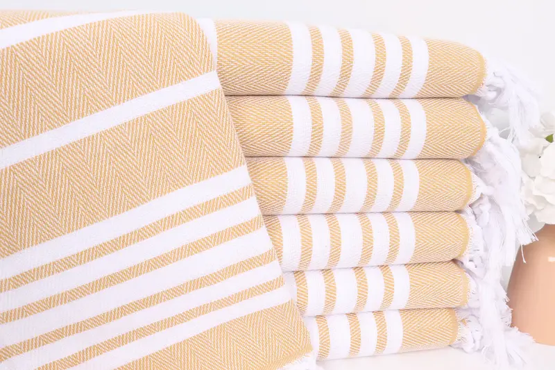 ジグザグハンドタオル マスタードコットンキッチンタオル 20x40インチ