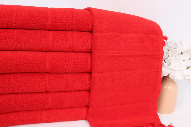 ストライプ テリー ディッシュタオル トルコ ハンドタオル レッド コットン 18x40 インチ