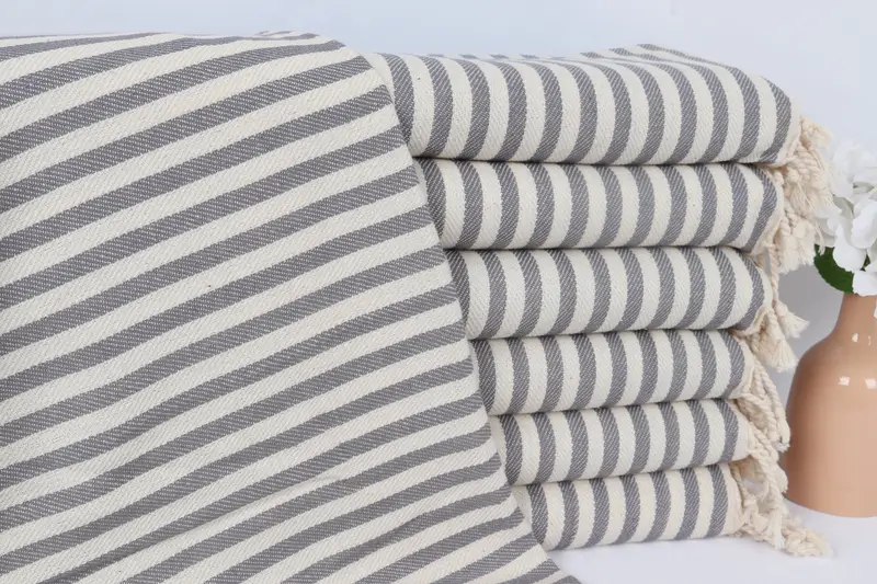 バスルームタオル グレーコットンストライプティータオル 18x40インチ