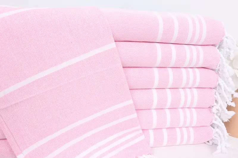 ストライプ ティータオル ピンク オーガニックコットン ハンドタオル 18x38インチ