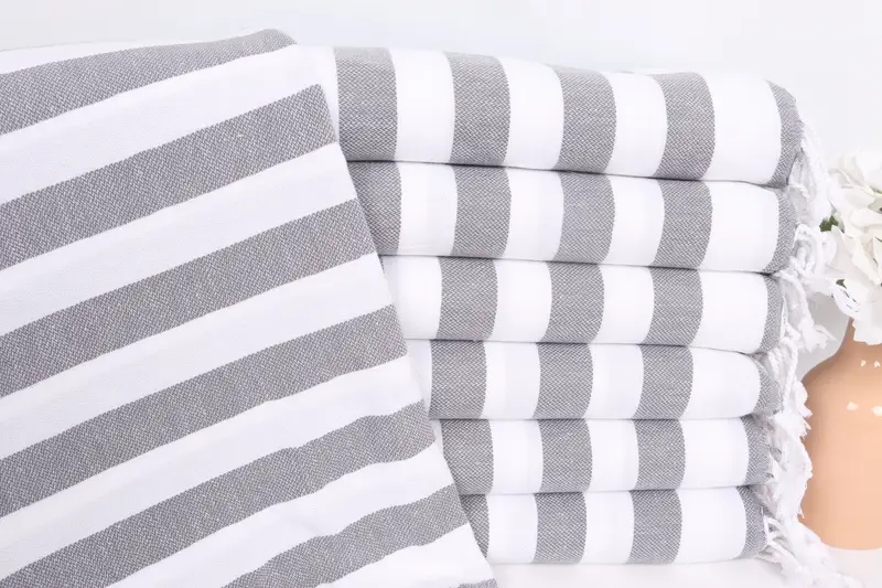 ダークグレーコットンハンドタオルストライプディッシュタオル、20x44インチ